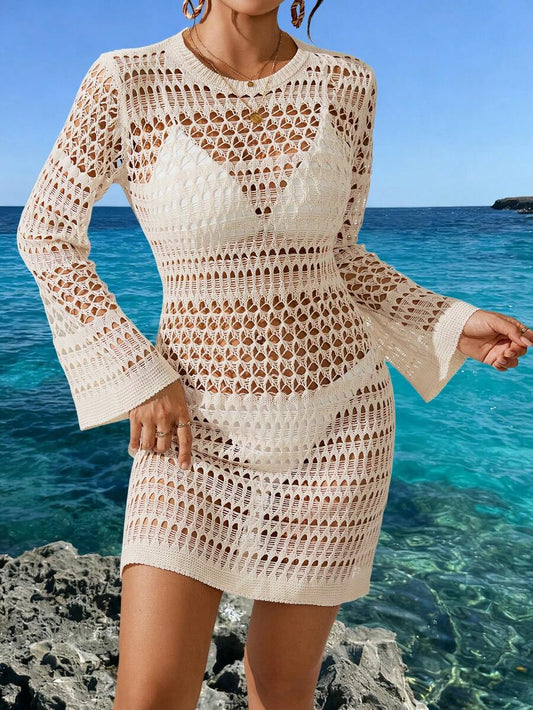 Irana Baskılı Yırtmaçlı Açık Sırtlı Midi Plaj Elbisesi