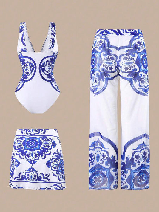 Swim Oasis Takım Etek ve File Pantolonlu Baskılı Mayo