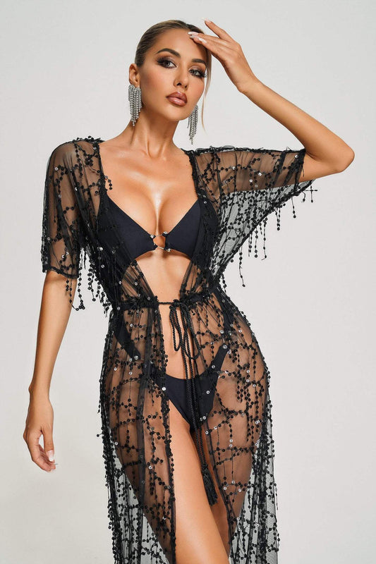Riviera Mesh Beach Dress – Yırtmaçlı Transparan Plaj Elbisesi