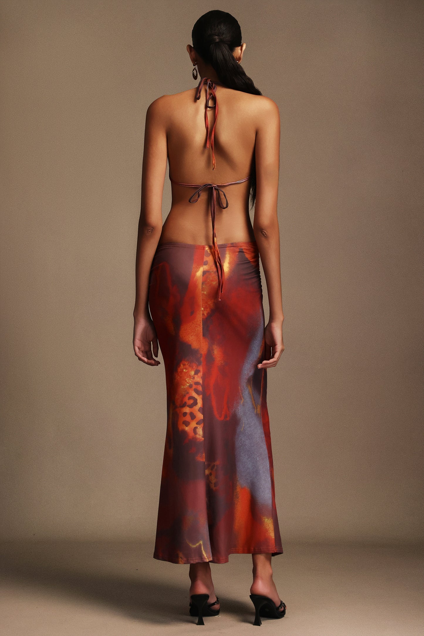 Edeline Kolsuz Açık Yaka Baskılı Maxi Elbise