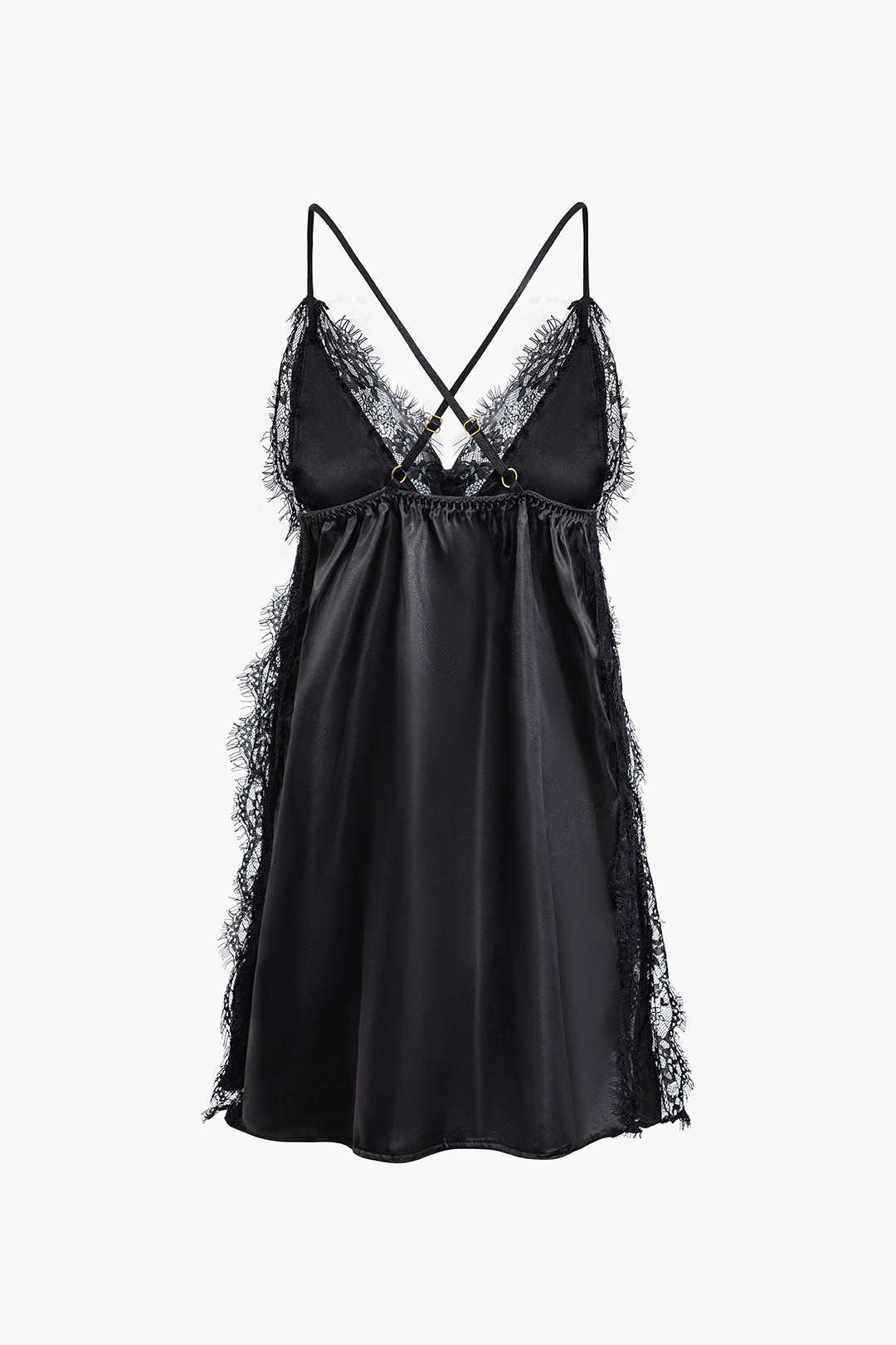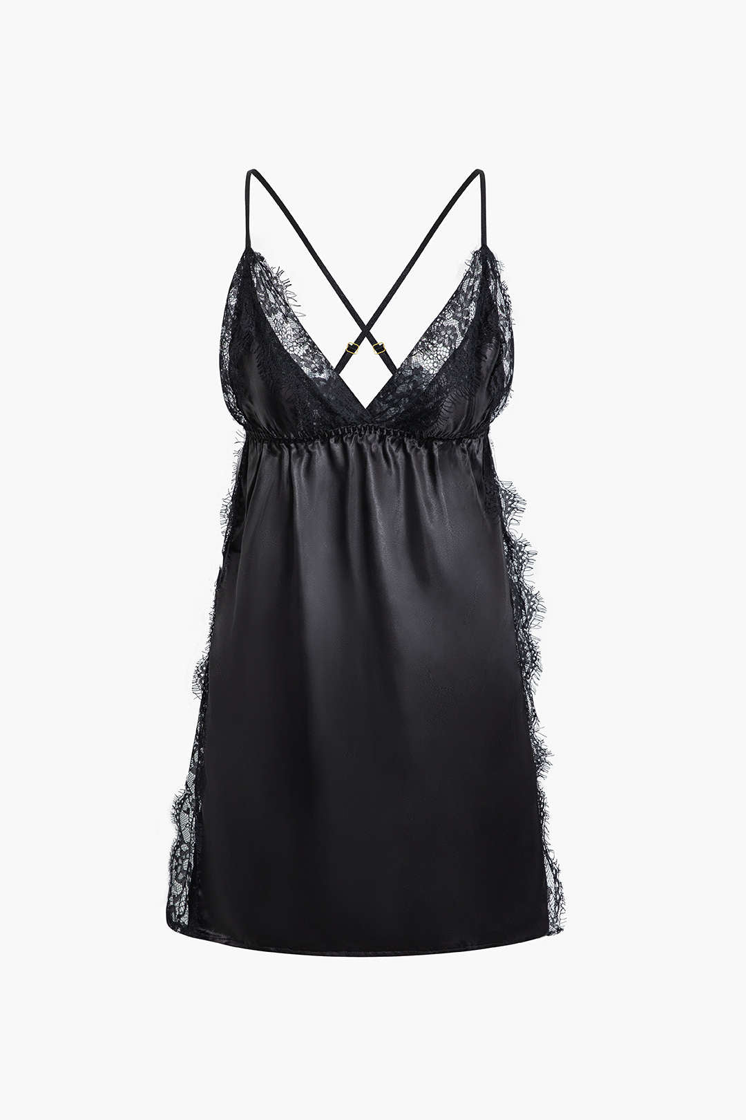 Saten Dantel Fırfırlı Yama Detaylı Sırt Açık Gecelik