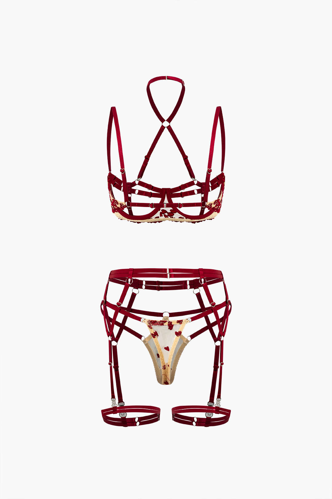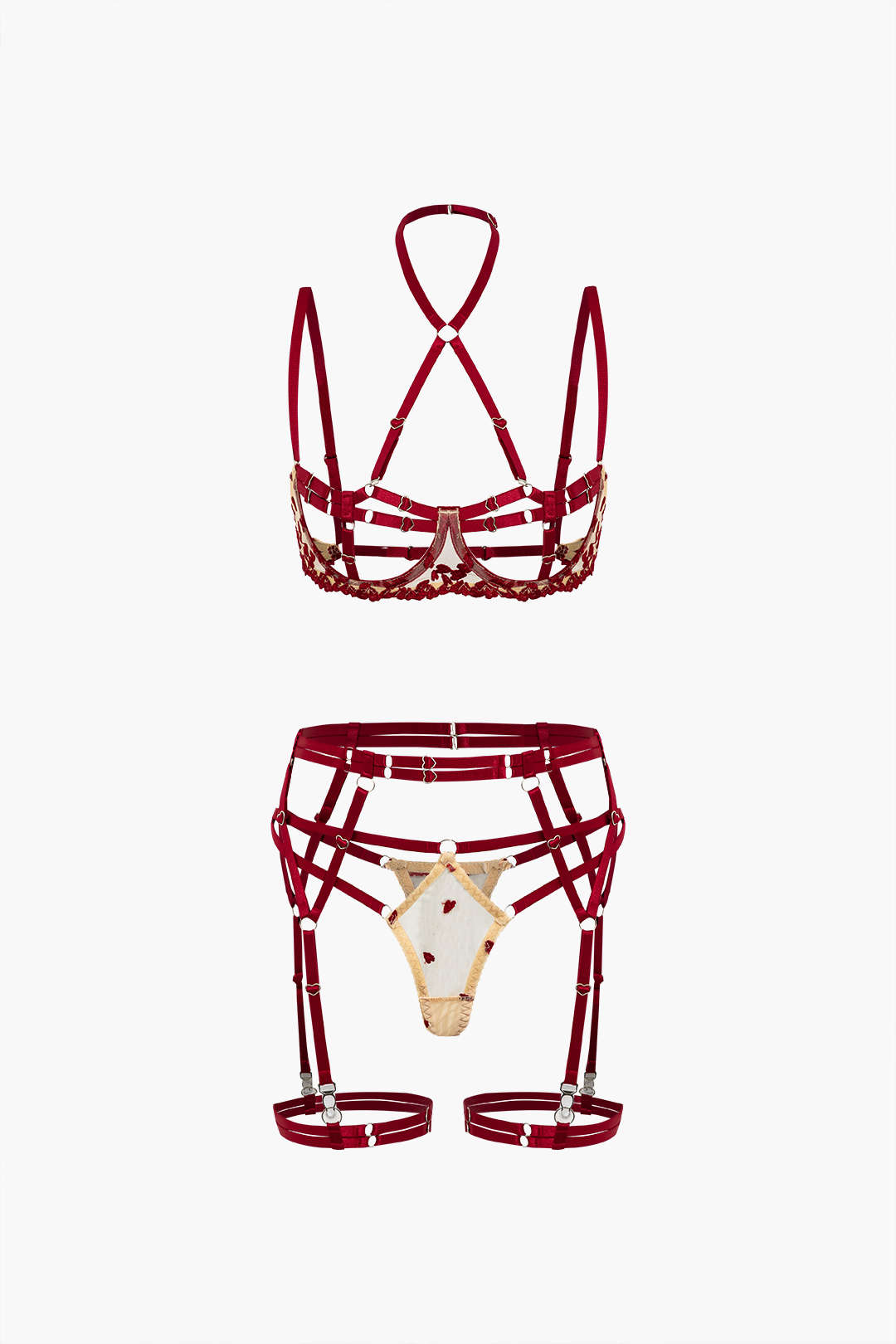 Tül Parchwork Metalik Kesik Detaylı Jartiyer Takımı
