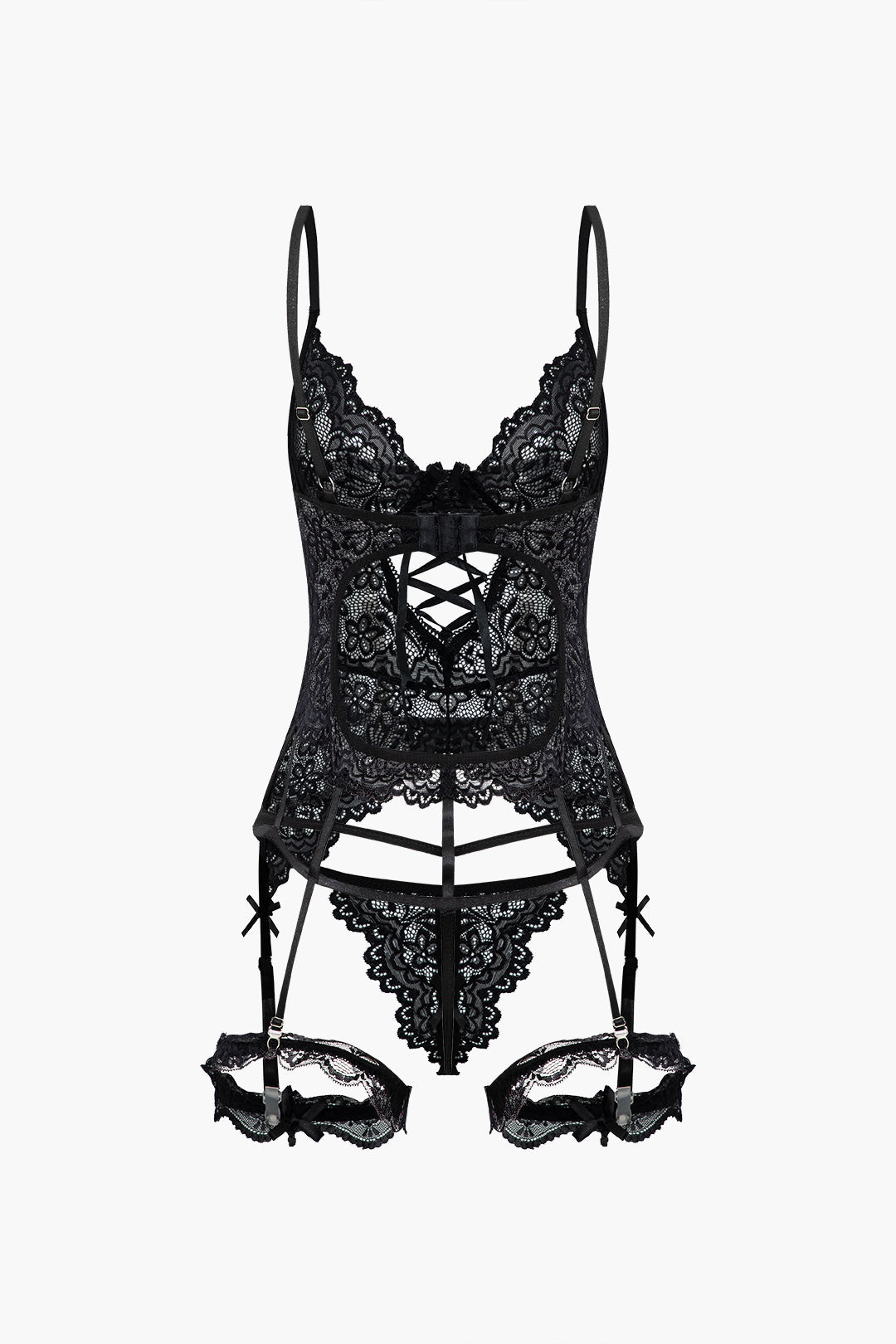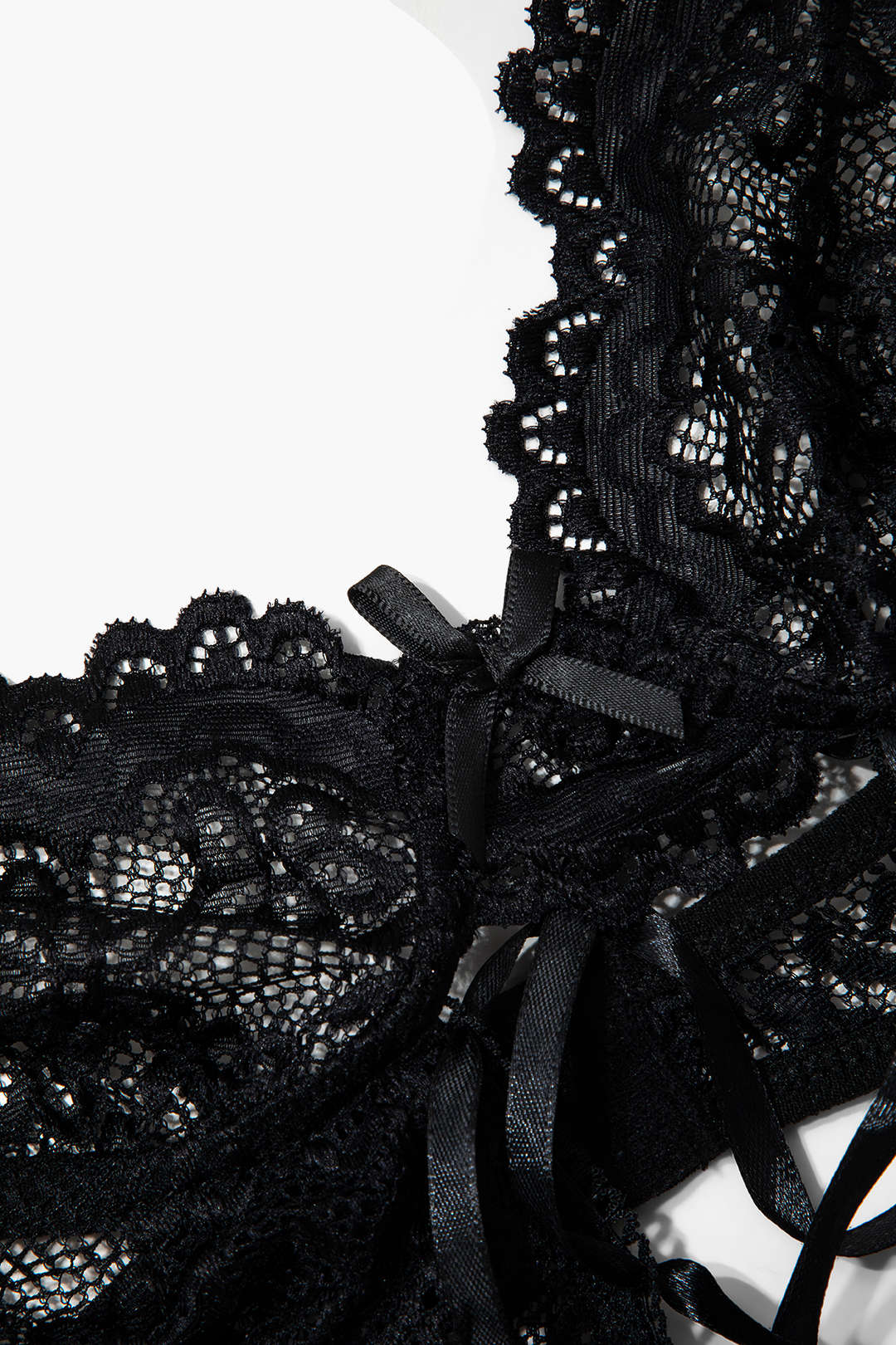 Düz Renk Kesik Dantel İç Giyim Jartiyer Seti