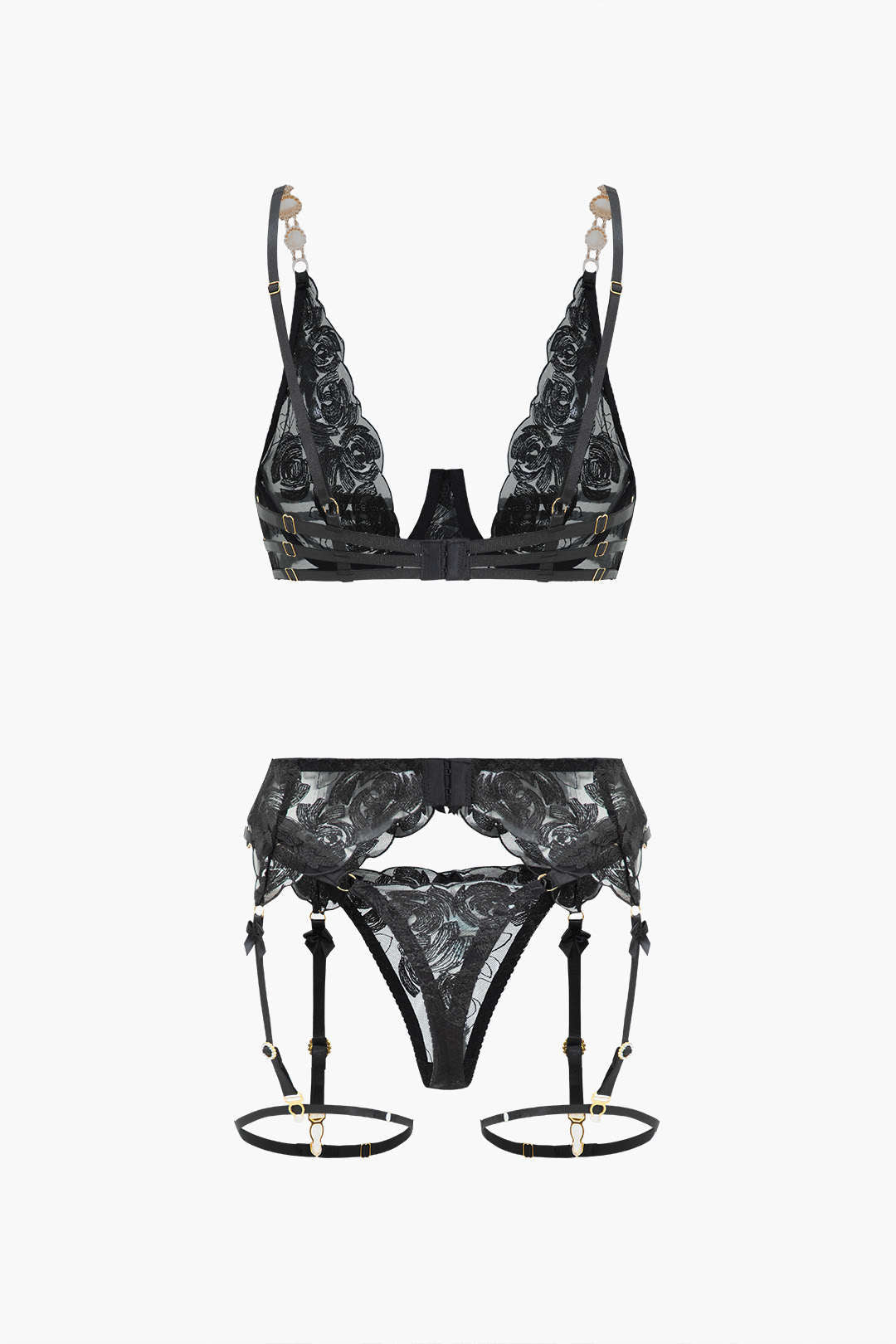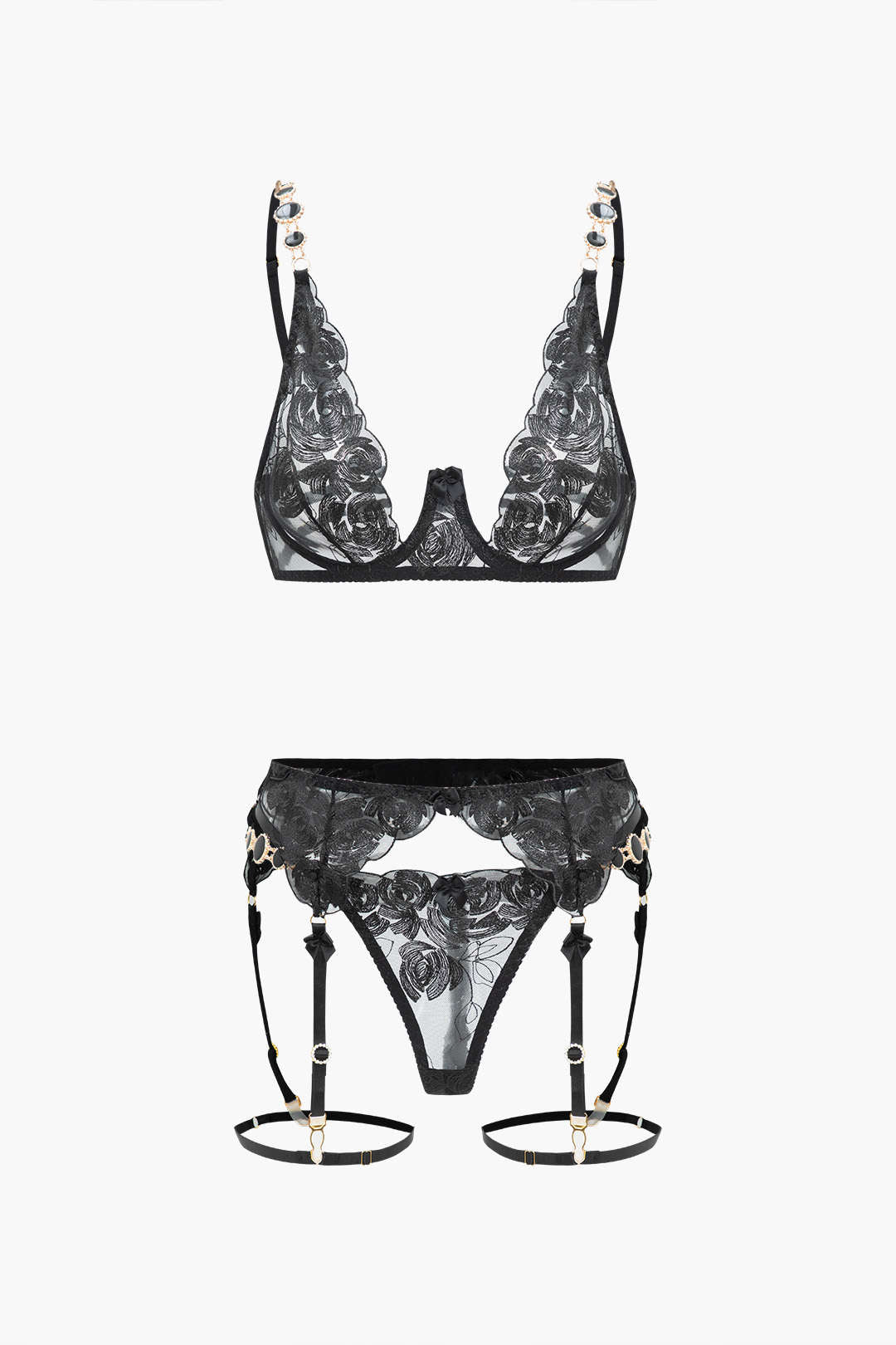 Dantel Metalik Zincir Nakışlı Jartiyer Takımı