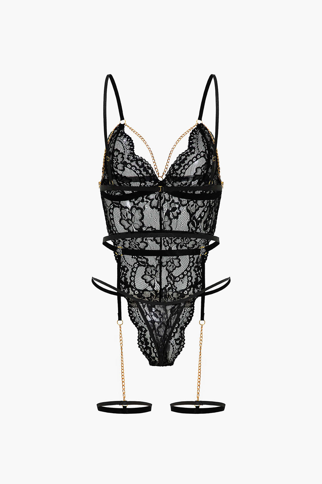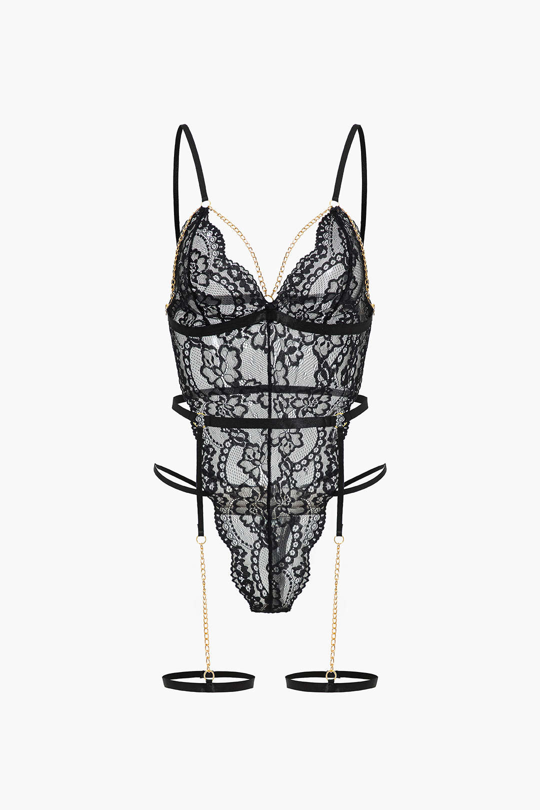 Dantel Metalik Zincir Kesik Detaylı Şeffaf İç Giyim Jartiyer Seti