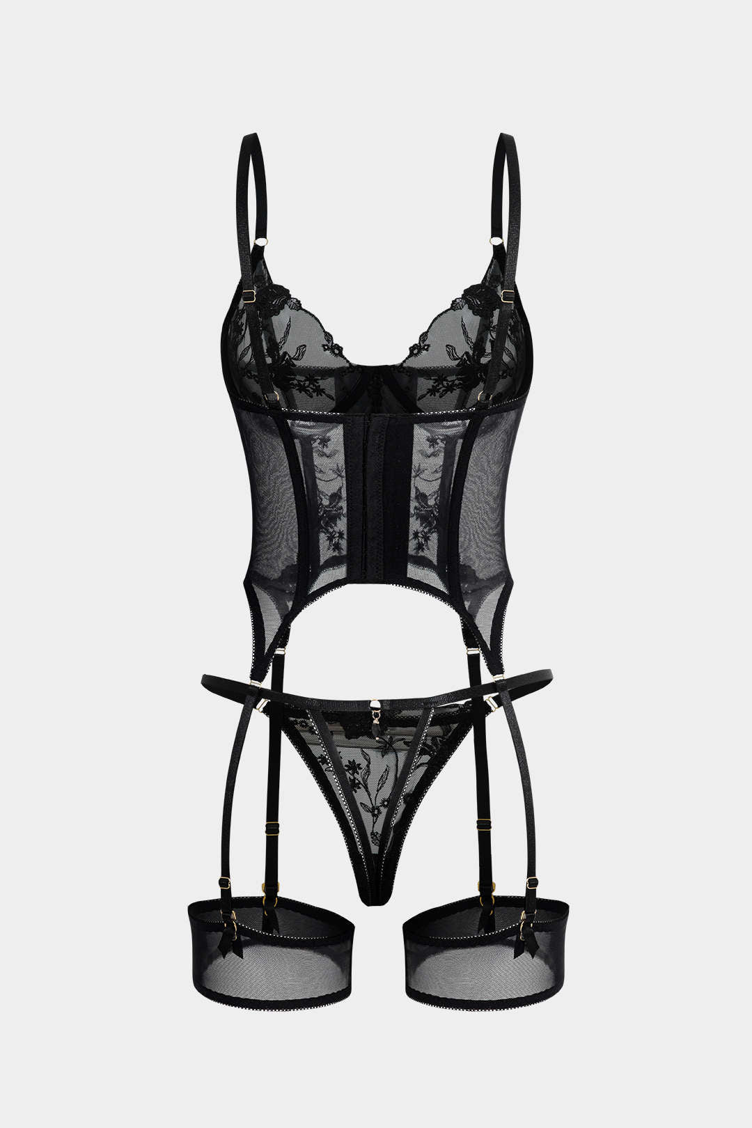 Şeffaf Tül Nakışlı Jartiyer Takımı