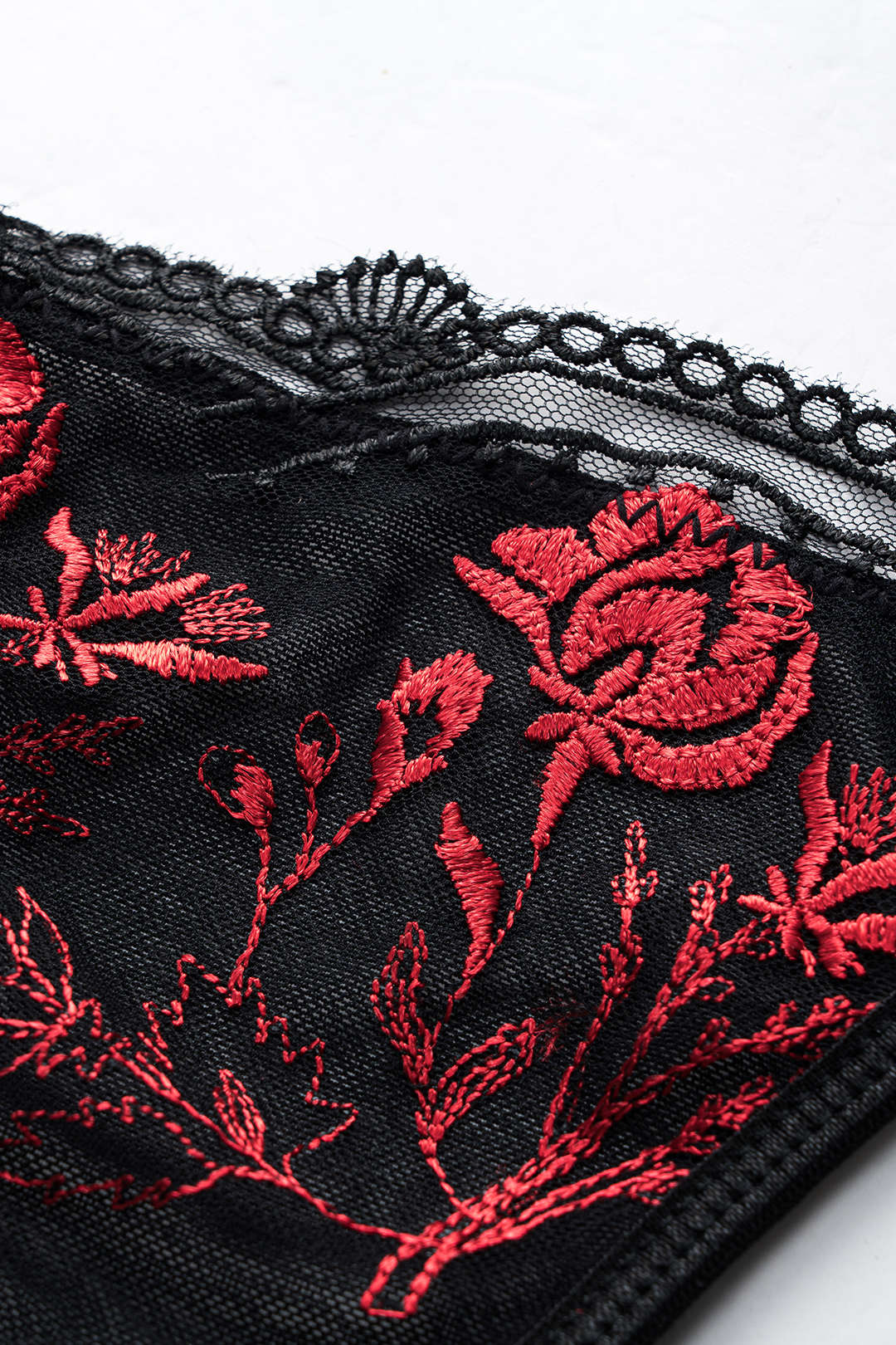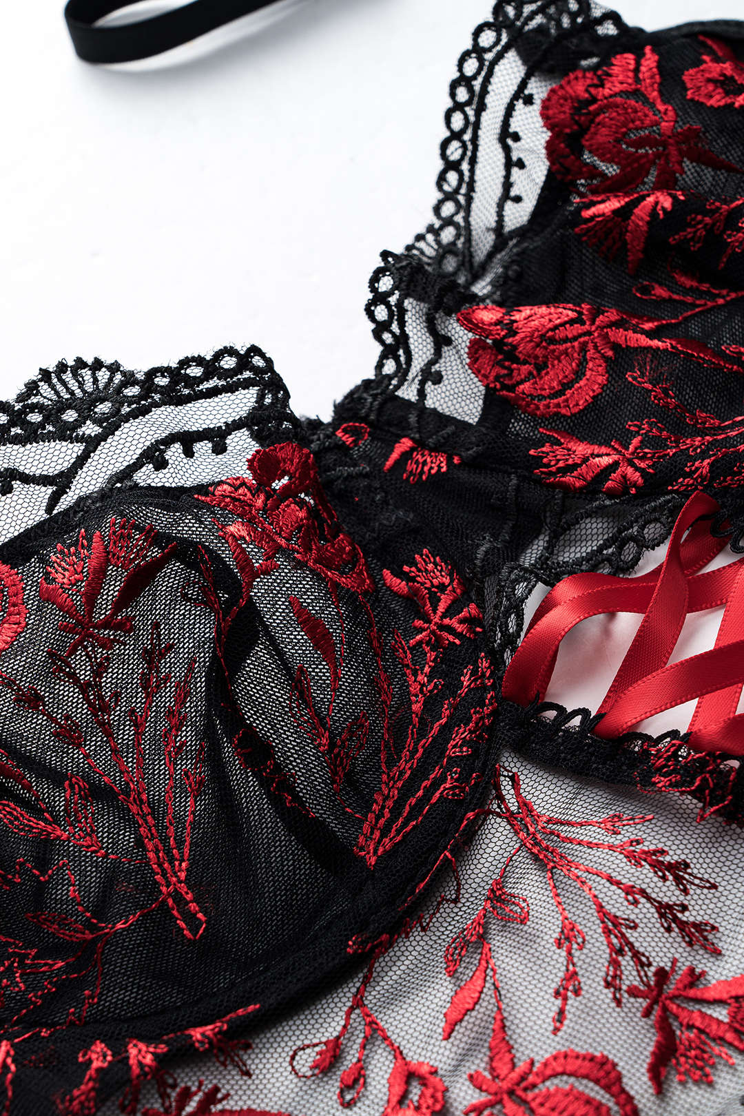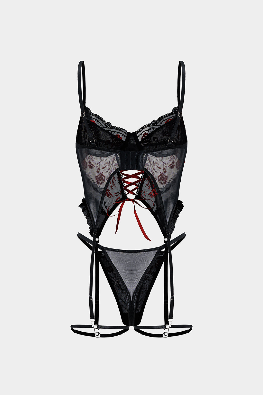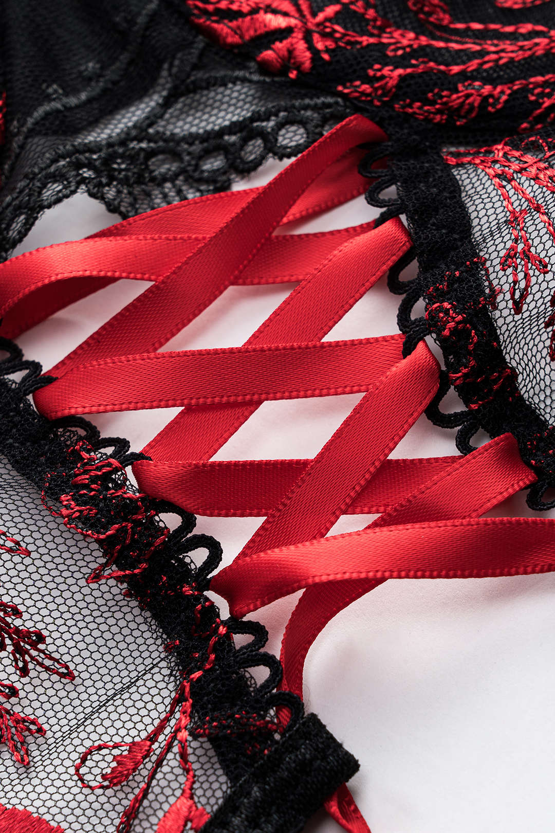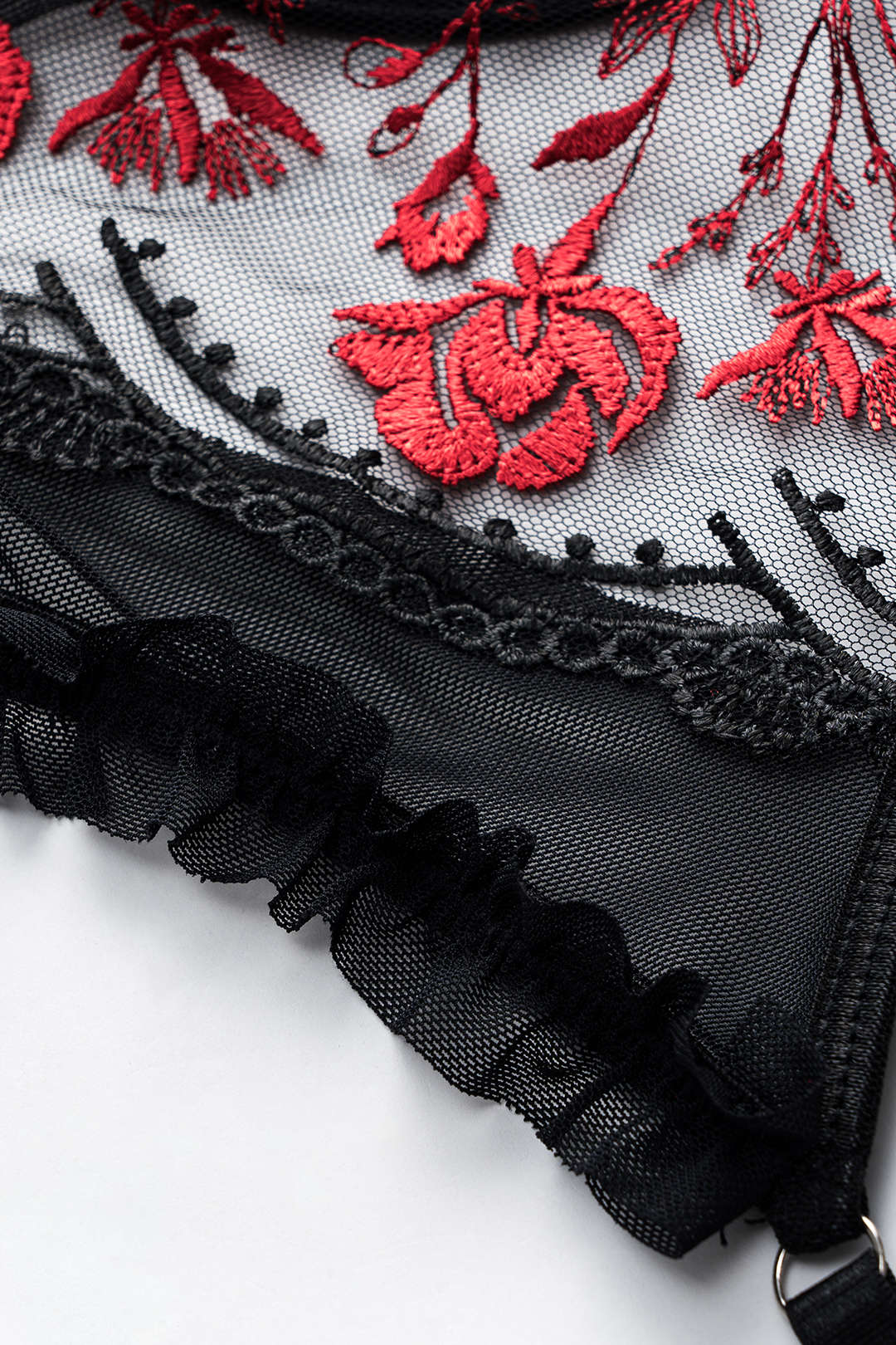 Tül Nakışlı Bağlamalı Büstiyer ve Jartiyer Takımı