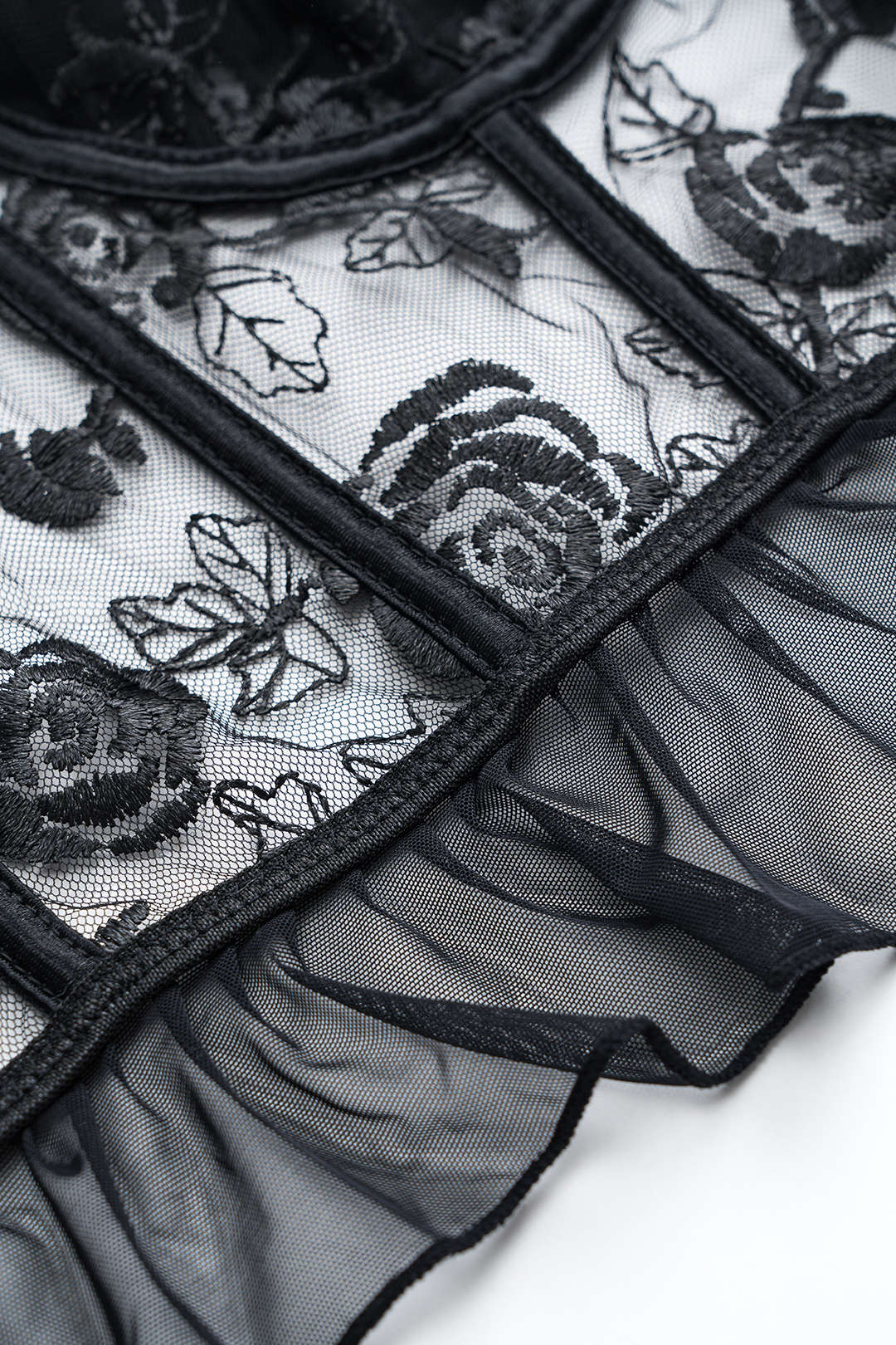 Tül Fırfırlı Nakışlı Korsaj Büstiyer