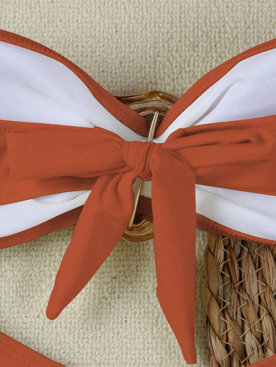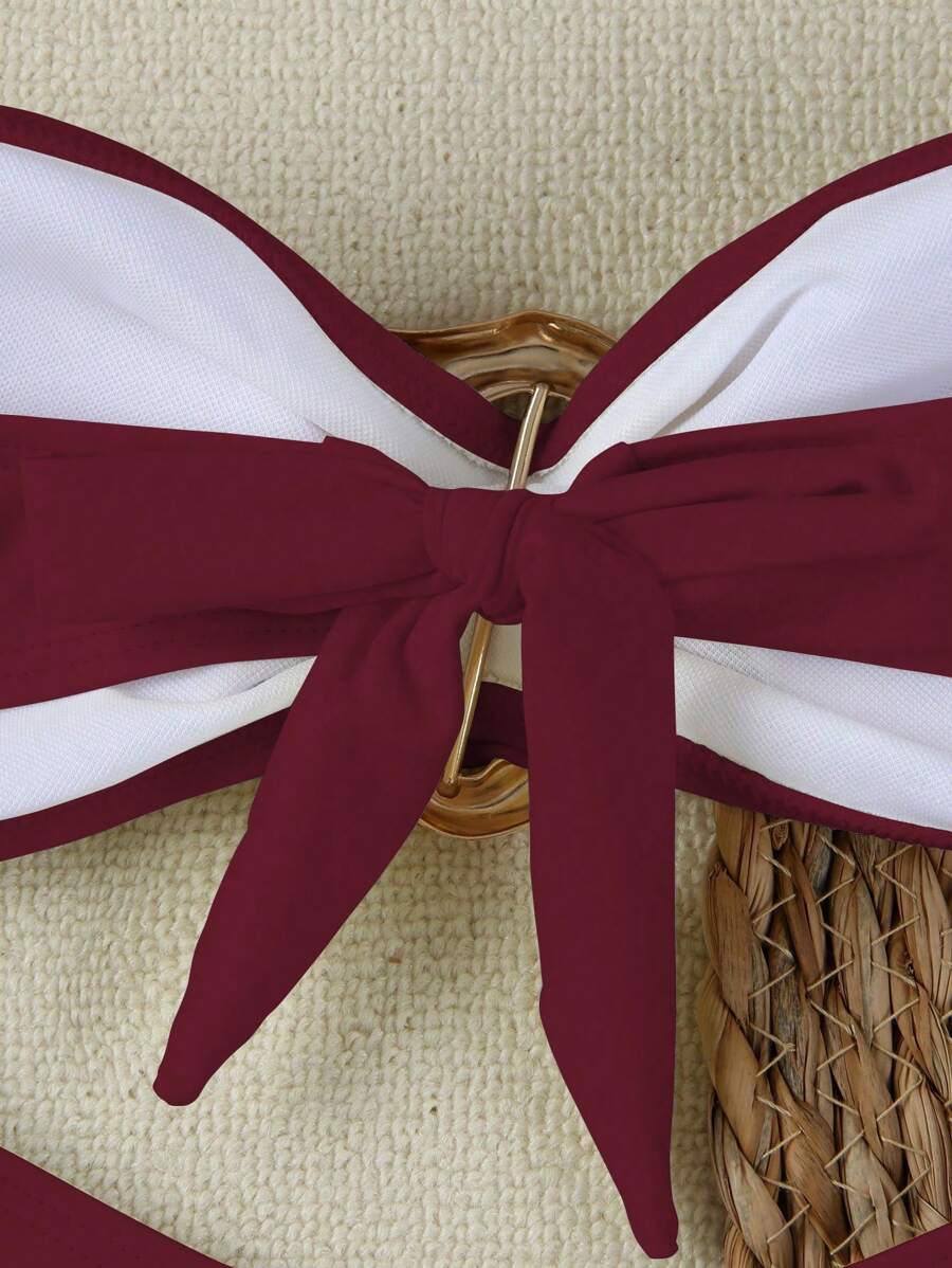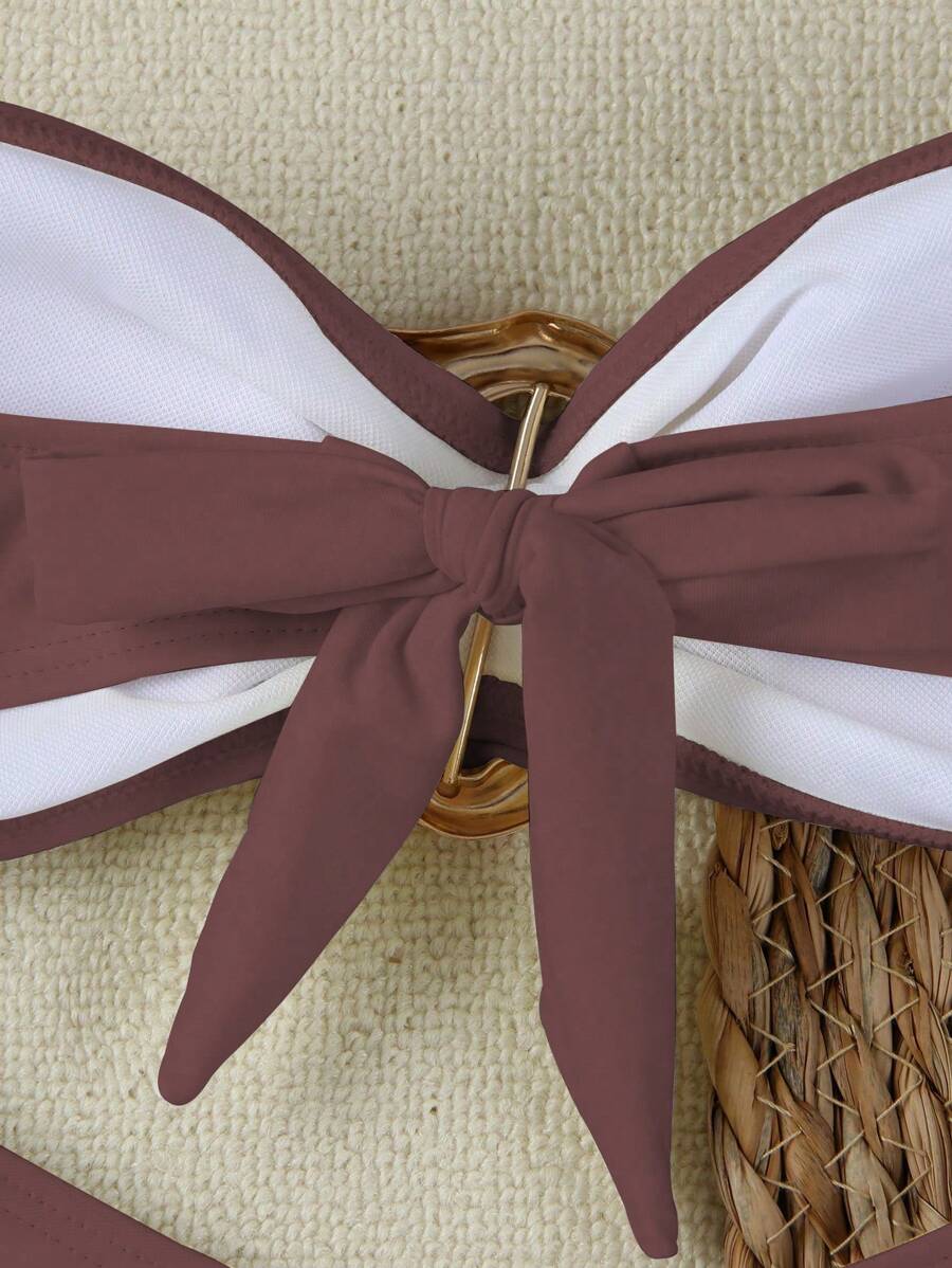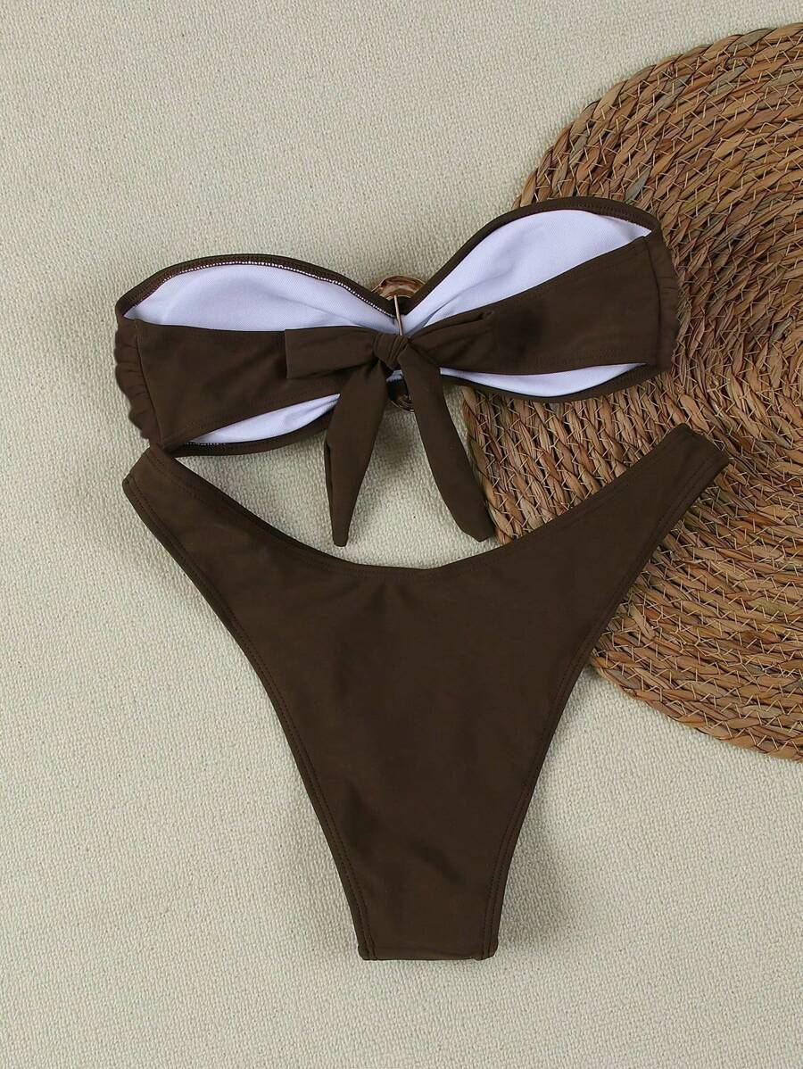 Polovedo Seksi Düz Renk Bandeau Bikini Seti
