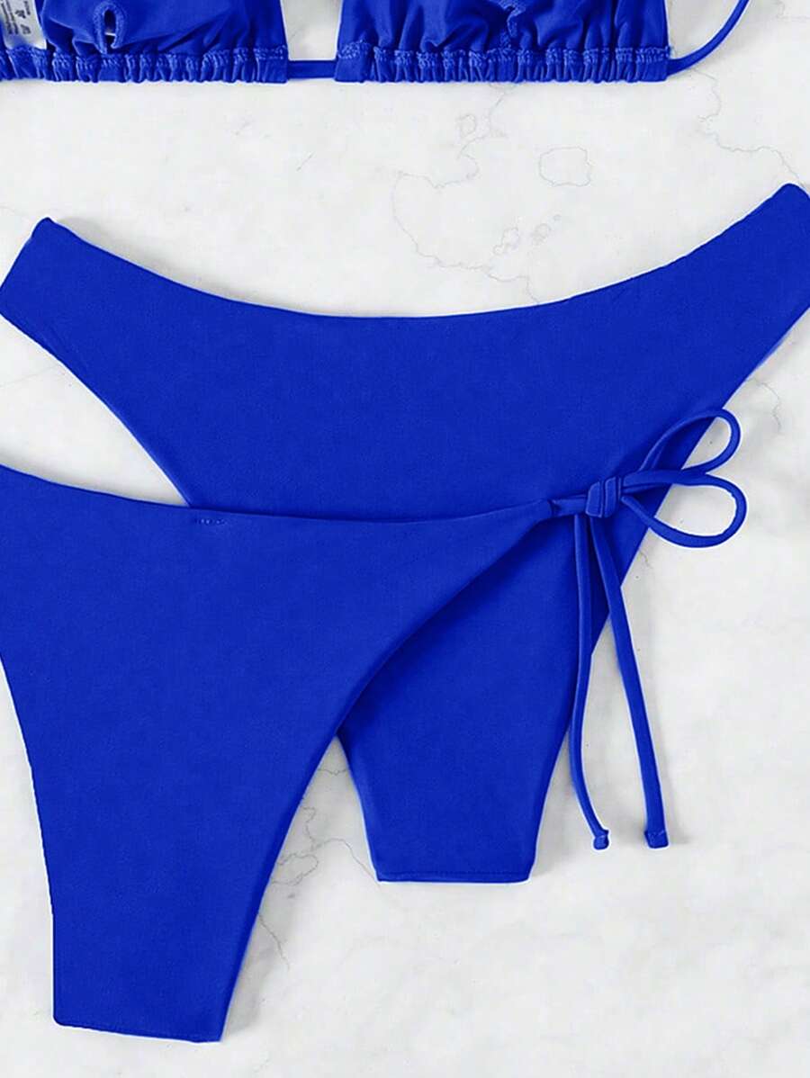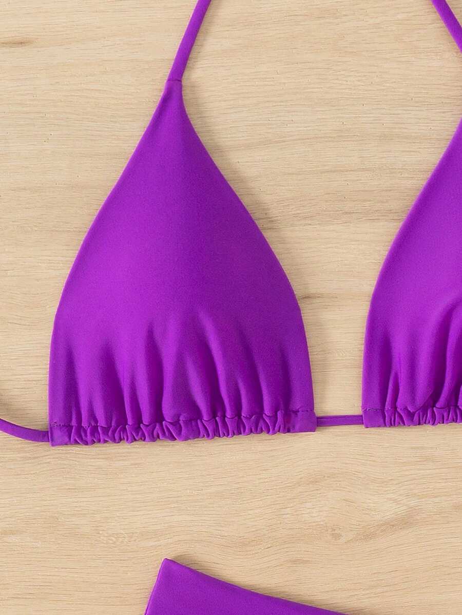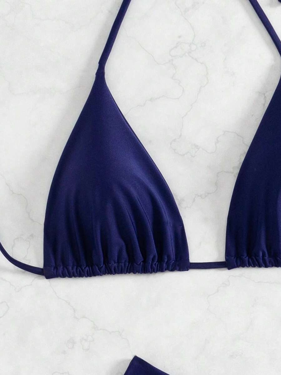SHEIN Swim Kadın Yaz Plaj Düz Renk Halter Bağcıklı Seksi Bikini Mayo Takımı