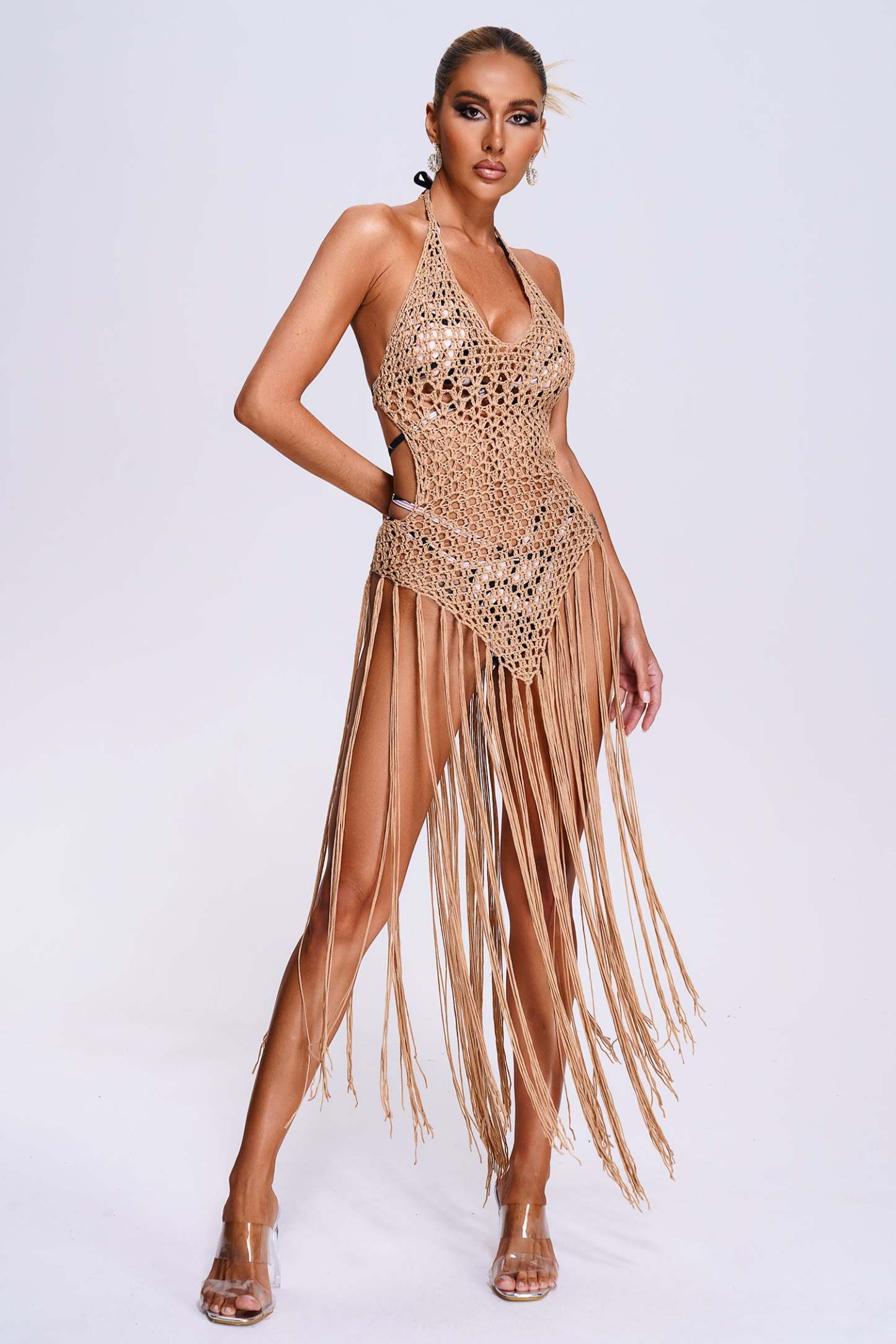 Bohem Tesare Püskül Detaylı Midi Elbise